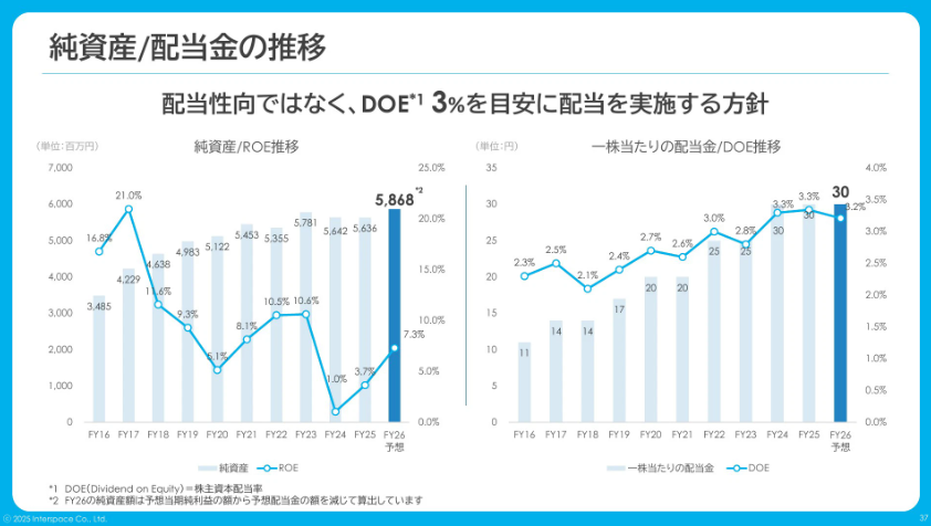 当社はこれまで、株主資本配当率(DOE)3%程度を目安とした安定的かつ継続的な配当を続けてきました。一方で、それ以外の還元策も含めた株価対策は経営の重要事項であり、より株主の皆様へ向けて投資価値を高めていくことが重要だと考えています。