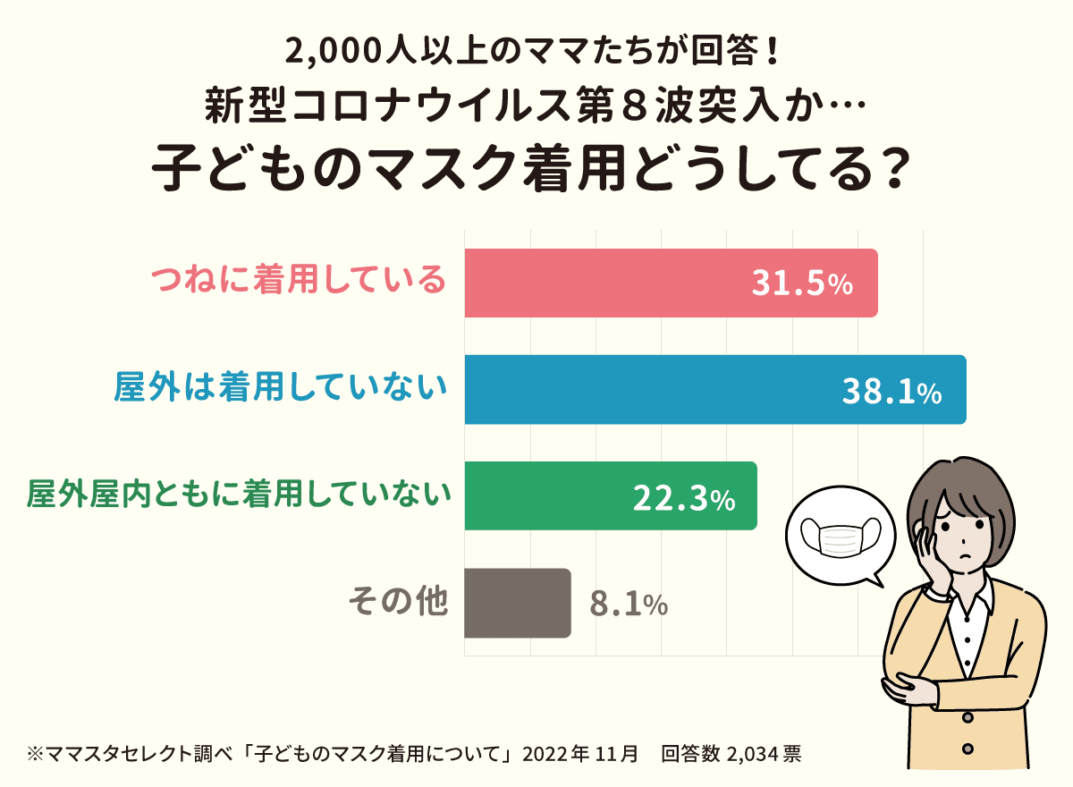 新型コロナウイルス感染症 第8波が懸念されるなか、ママは「子どものマスク着用について」どう考え、どう対応しているのか? 2,000人を超える読者が回答!