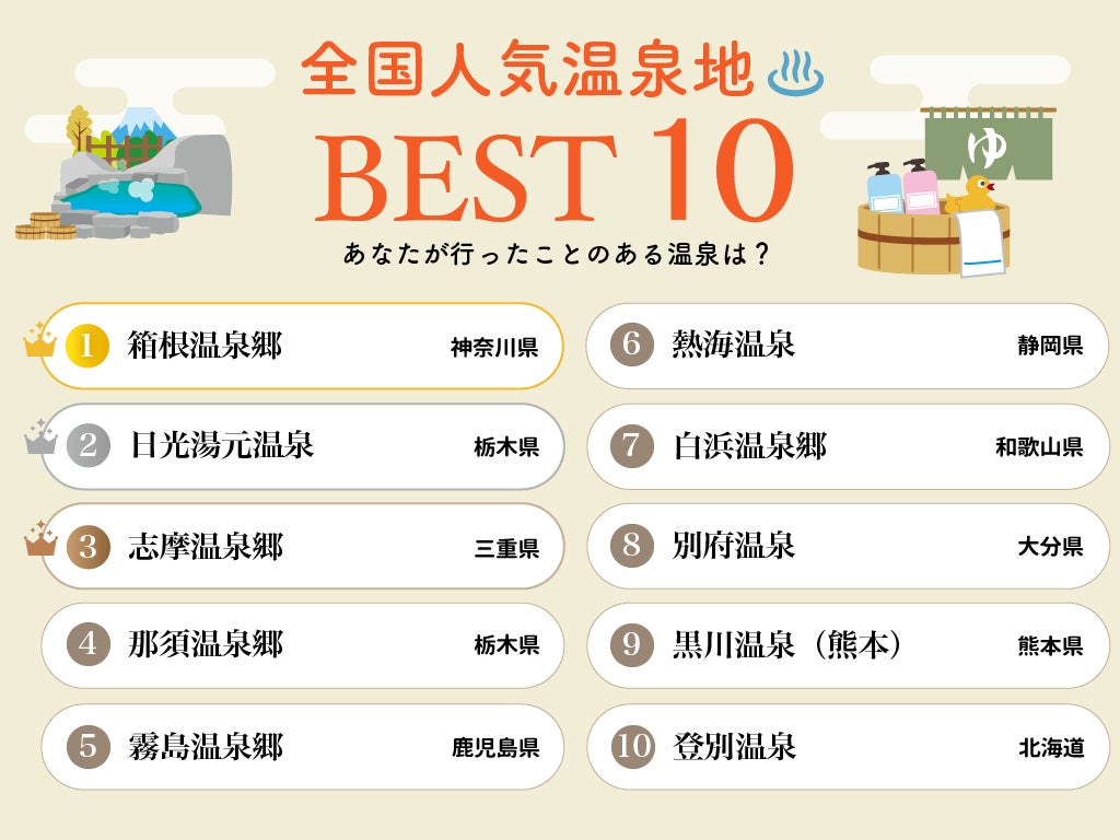 ベスト10は日本の名湯として名高い有名温泉地が並びました。