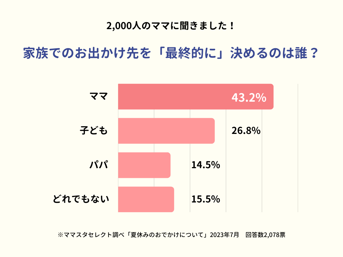 2,000人のママたちが回答!4割強のママが「お出かけ先の決定権はママにある」。家族のお出かけ先の選び方