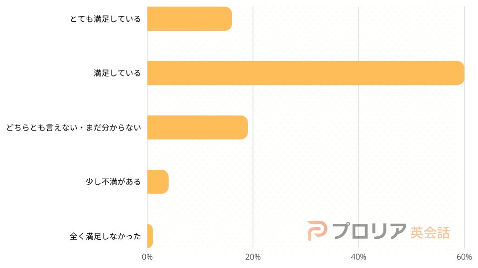 7割以上の回答者が英会話教室に満足しているようです。明らかな不満をもっている人は5%なので、多くの受講生は満足しているようです。