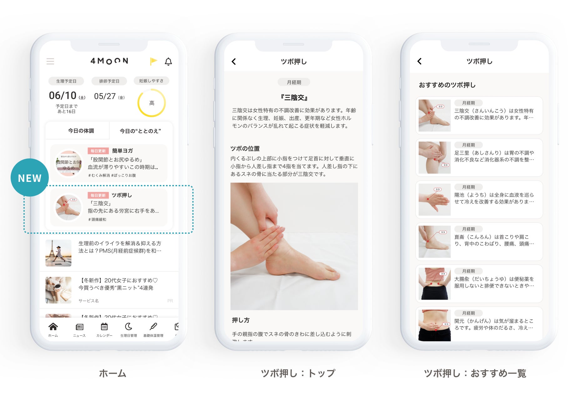 生理周期で変わる女性のカラダ「ツボ押し」でととのえ!ヘルスケアアプリ「4MOON」新コンテンツリリース