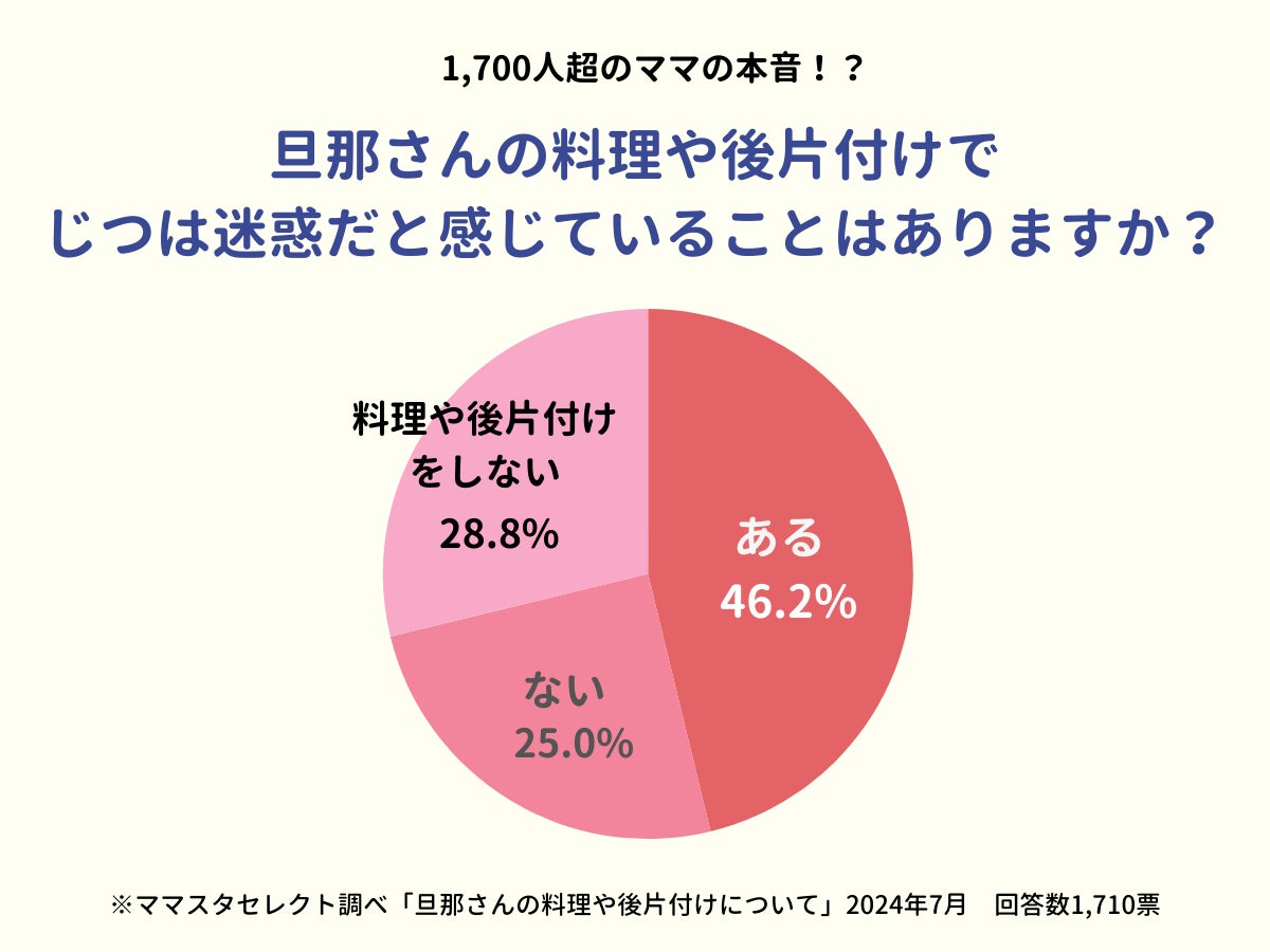 【1700人超のママの本音】2人に1人のママが、夫の料理や後片付けで「じつは迷惑」と感じていることがある?