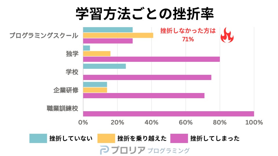 独学でのプログラミング学習挫折率は80%!プログラミングスクールは29%に|プロリア プログラミング