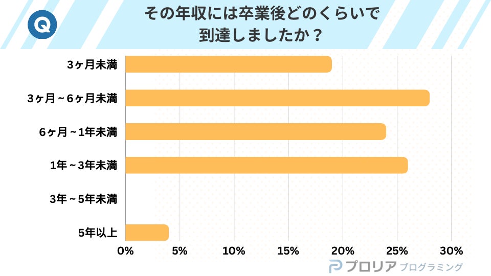 調査対象:18歳以上のプログラミングスクール卒業生限定(20代:26%、30代:56%、40代:13%、50代:6%)