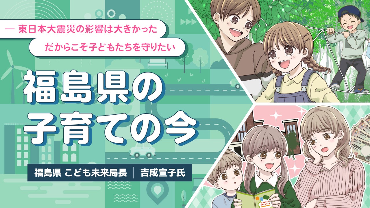 今も風評が完全には消えないなか、福島県では、こども未来局長 吉成宣子氏をはじめ、「子どもたちの育ち、遊びの環境などについて、県として真剣に考えなければならない」という思いを持った職員たちが、子育て政策に力を入れてきました。3人の子どもを育ててきたワーキングマザーでもある吉成宣子氏が、福島県の子育ての“今”を伝えます。